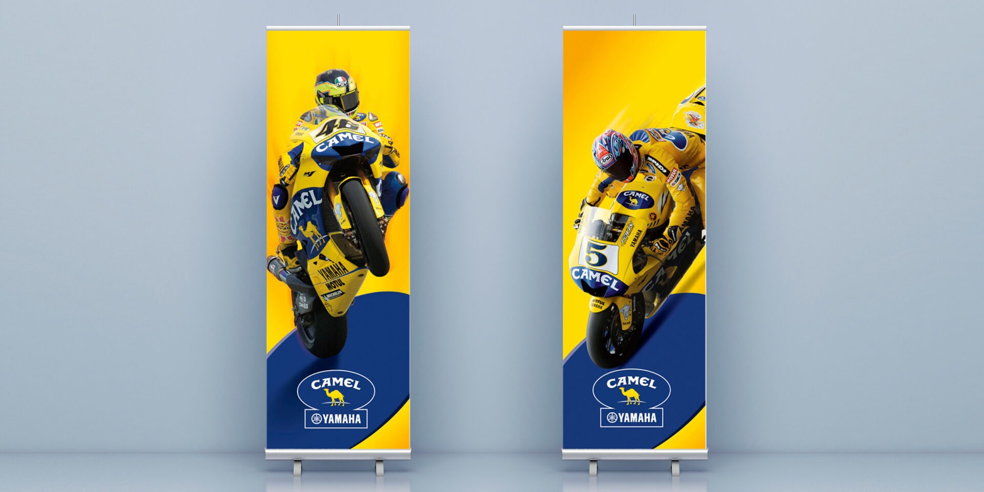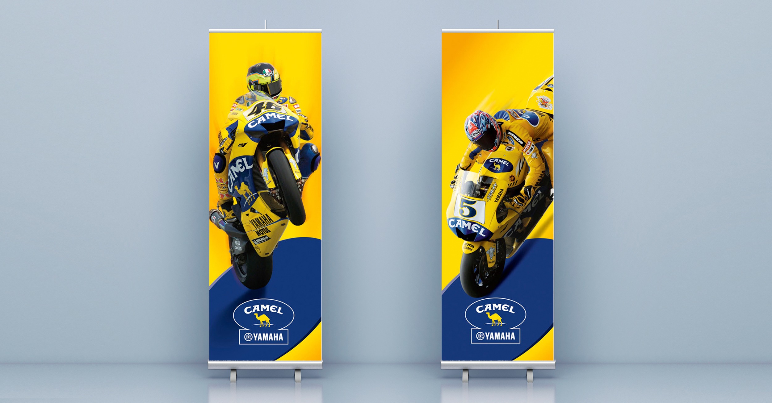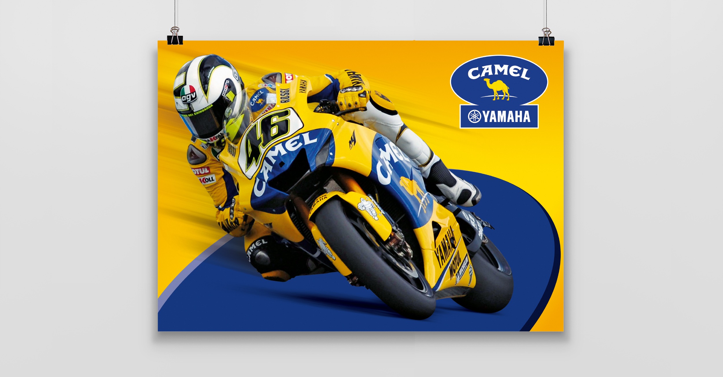 Camel per lungo tempo è stato partner degli sport motoristici. In MotoGP ha supportato i team di Valentino Rossi, producendo materiali per le lounge area dei Grand prix, gadget e materiali per manifestazioni di contorno e locali collegati, tabaccherie mobili, ecc.