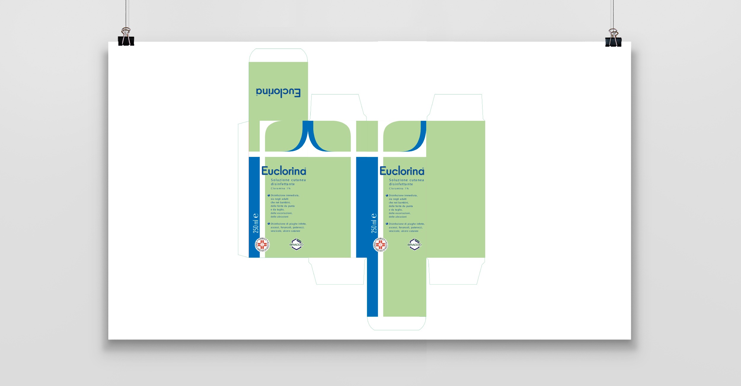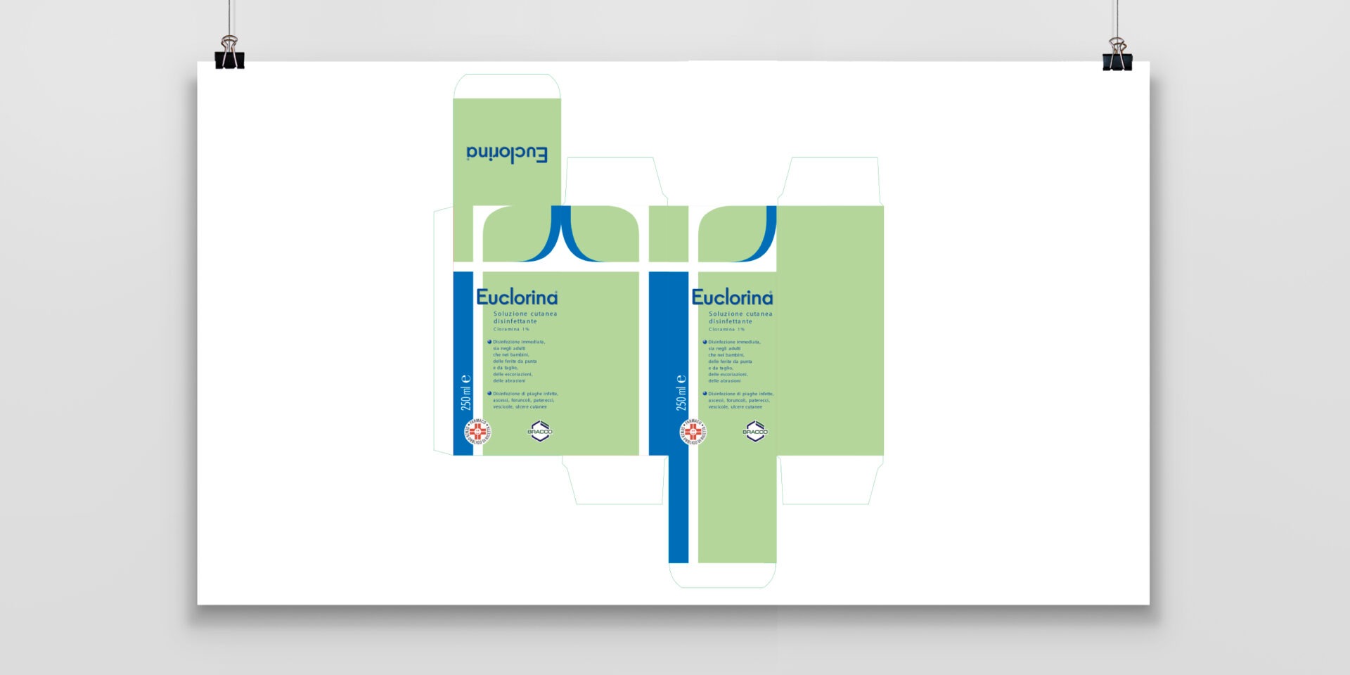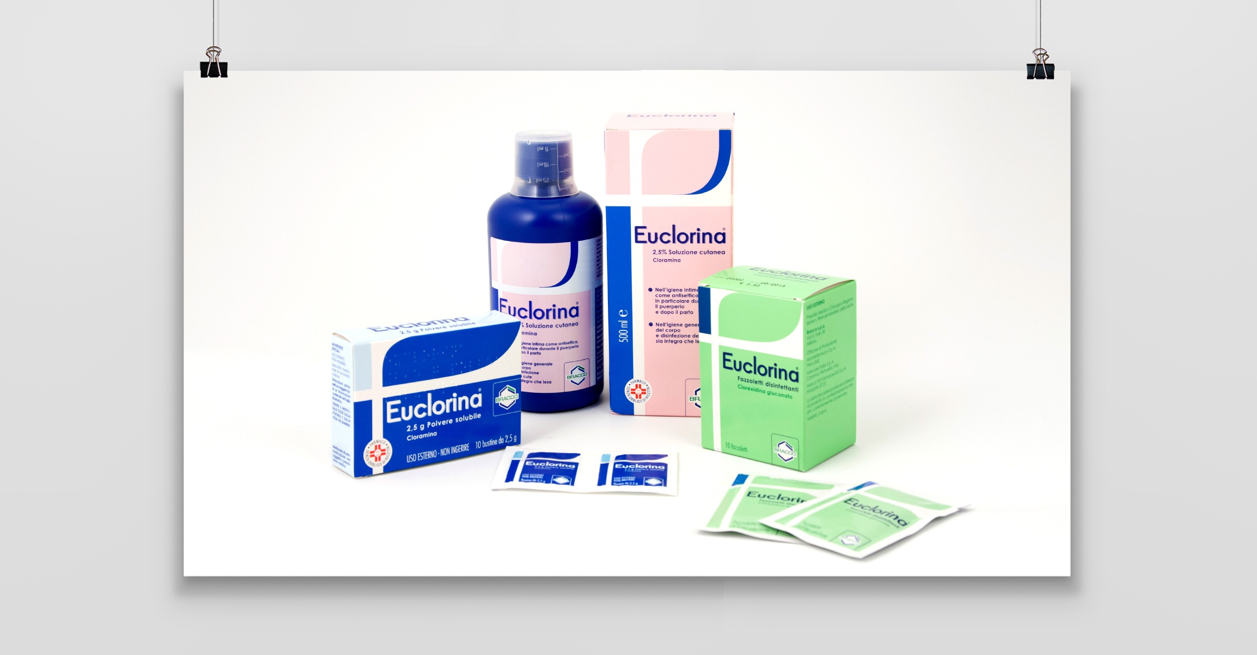 Un packaging lineare, essenziale sviluppato su tutta la linea Euclorina.