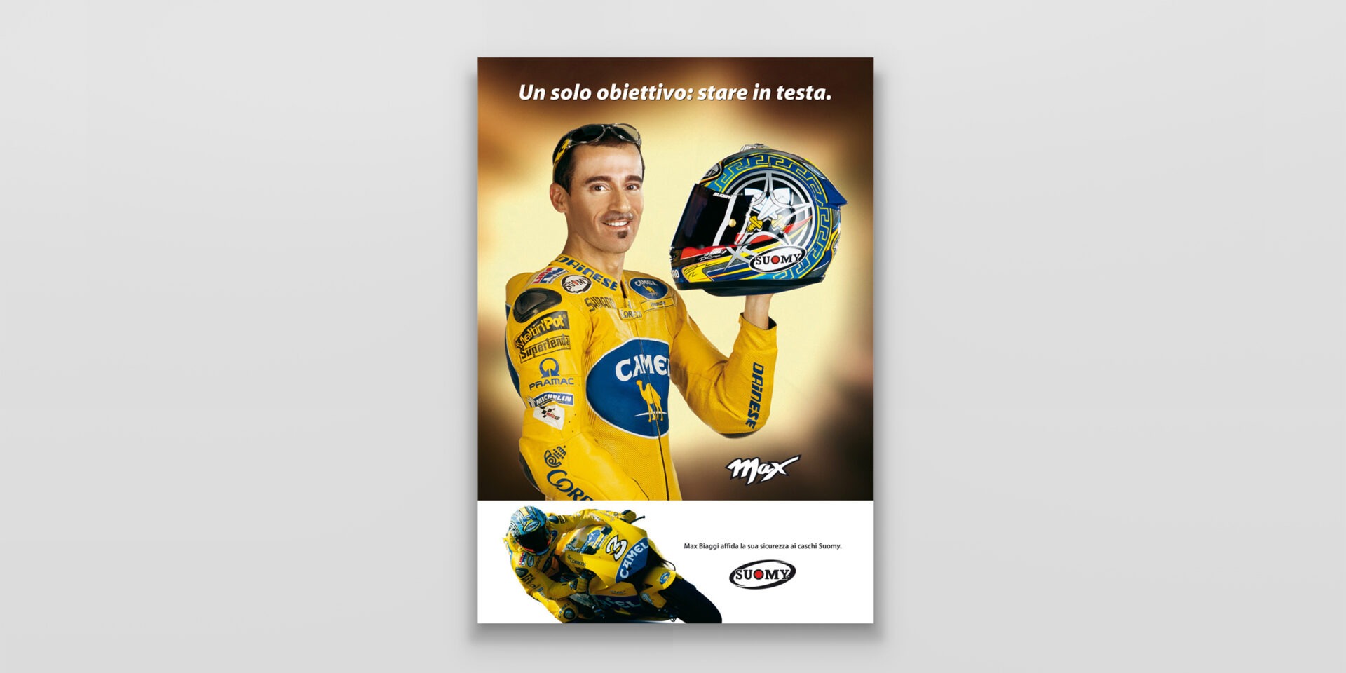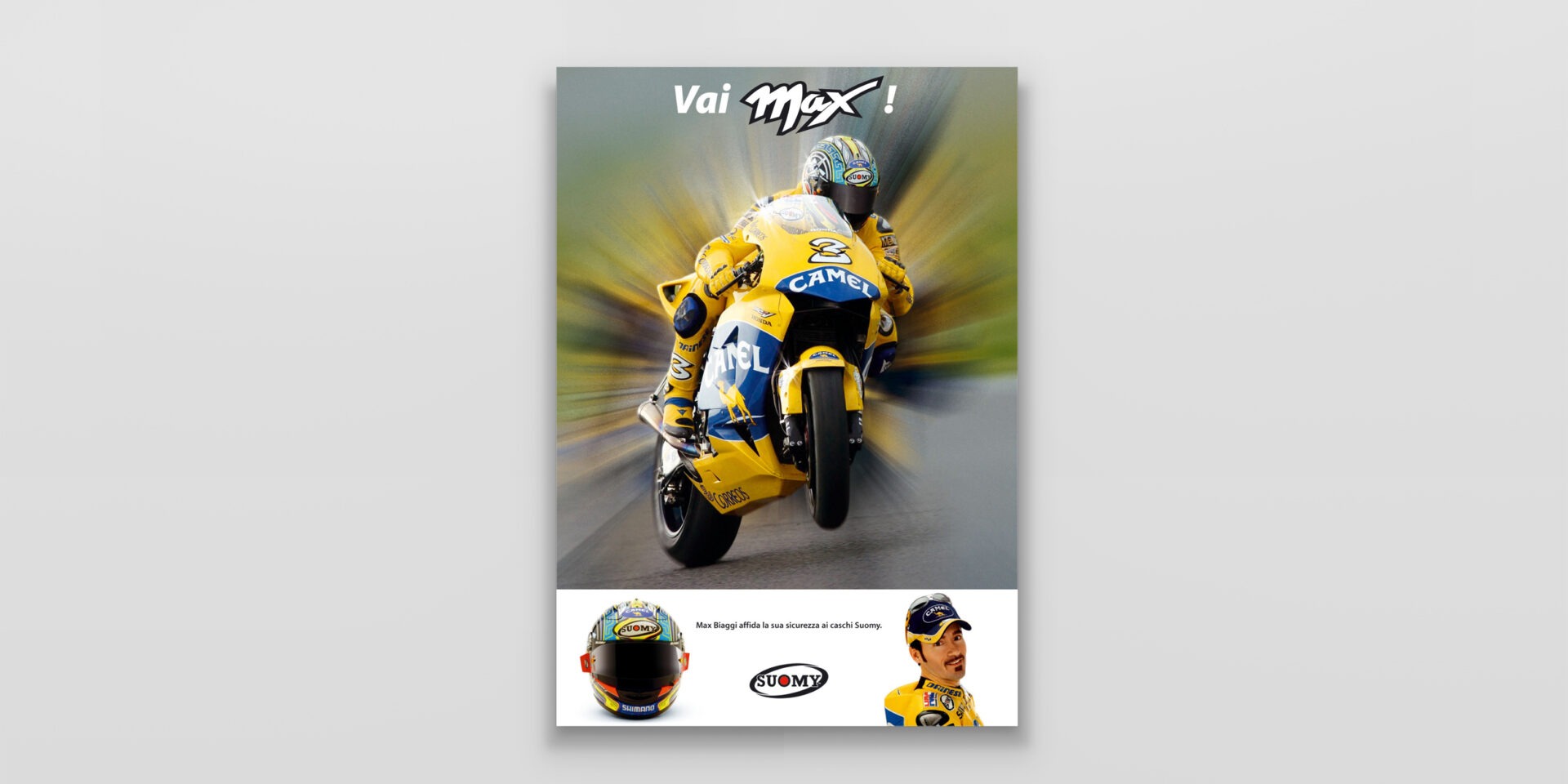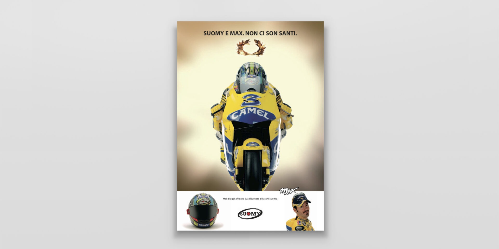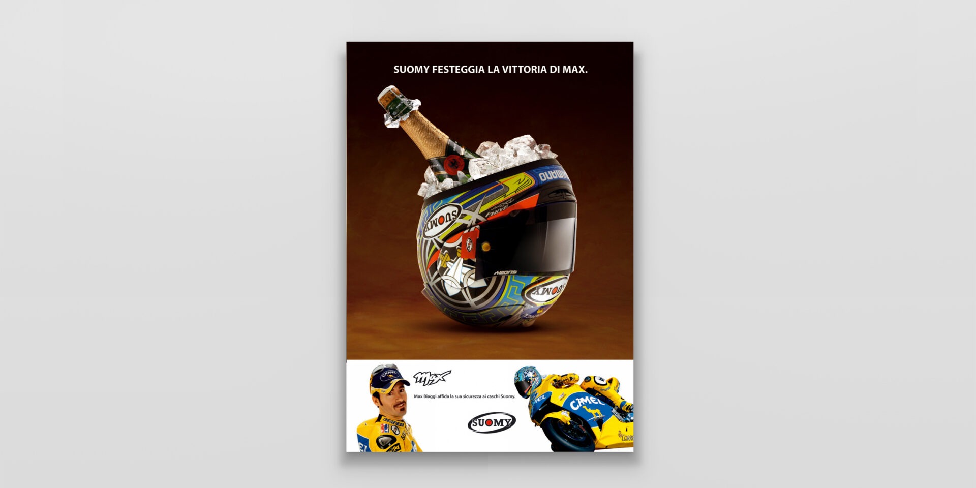 Suomy "Max" Suomy fornisce i caschi ai migliori piloti del mondiale MotoGP. Max Biaggi è il principale testimonial di questa campagna. Caschi replica per sentirsi dei campioni. Cliente:Suomy Settore:Sport wear Agenzia:Frova e Castori Creatività:Marco CastoriAntonio Frova Share this: