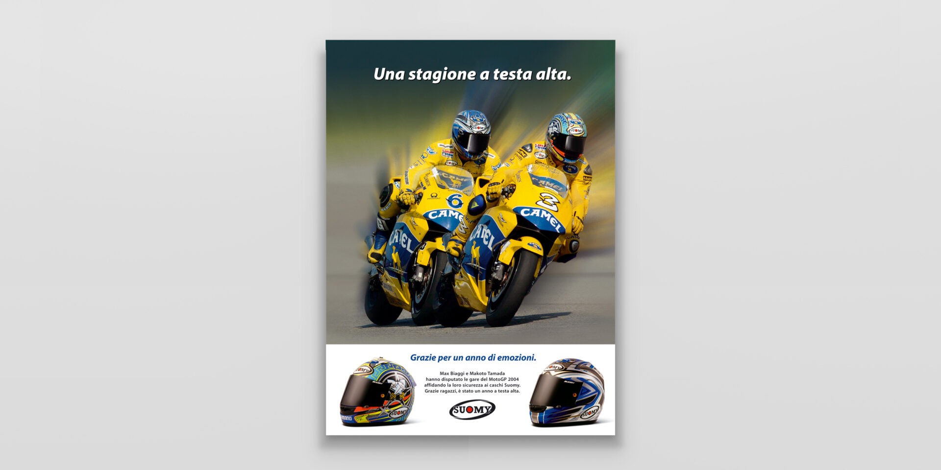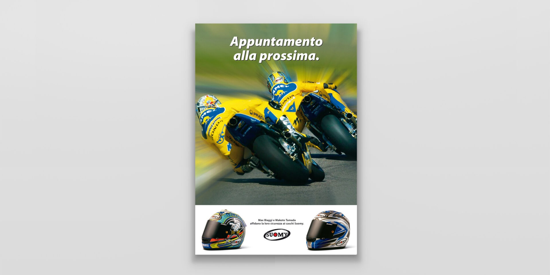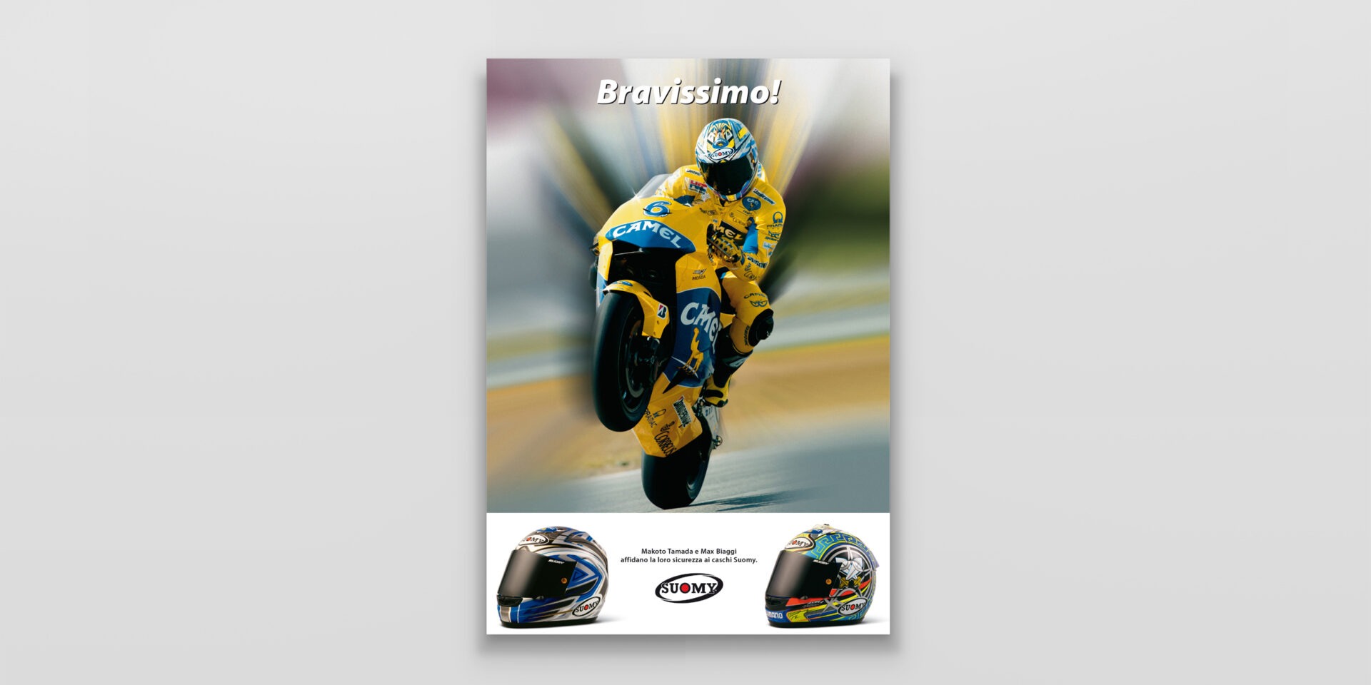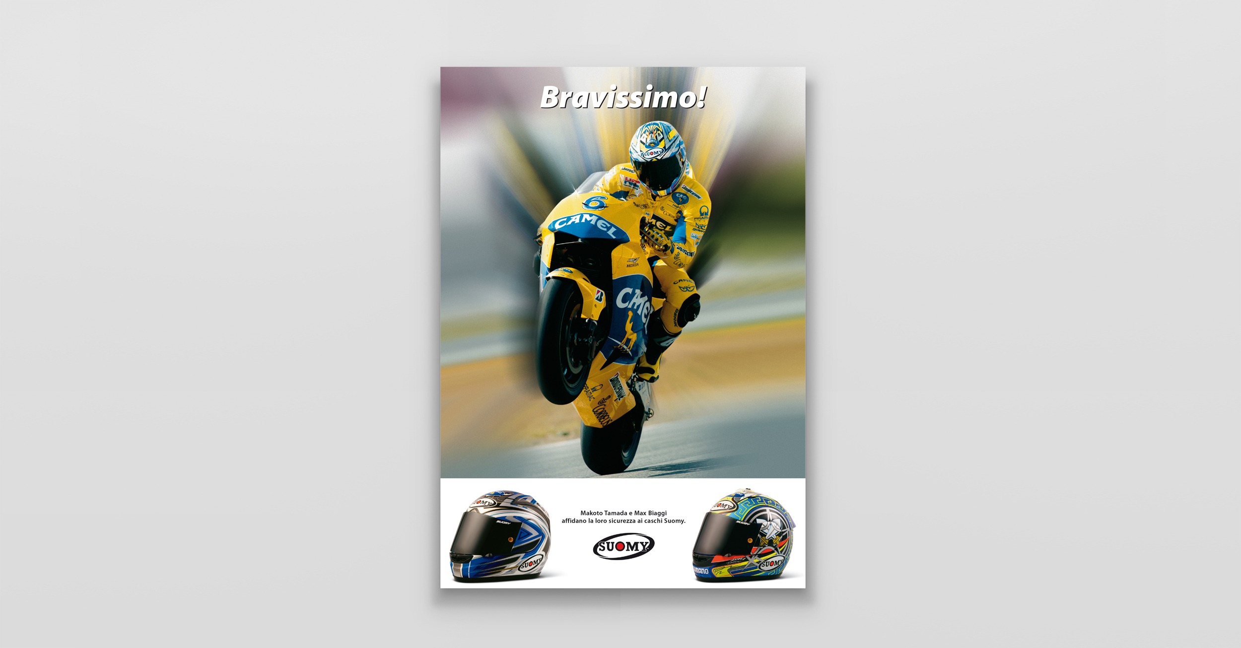 Suomy "Max" Suomy fornisce i caschi ai migliori piloti del mondiale MotoGP. Max Biaggi è il principale testimonial di questa campagna. Caschi replica per sentirsi dei campioni. Cliente:Suomy Settore:Sport wear Agenzia:Frova e Castori Creatività:Marco CastoriAntonio Frova Share this:
